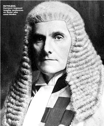 AS SOON as Carmont had decided to solve the blade problem, he was merciless. In one court sitting he passed sentences of up to 10 years on eight men – 52 years in all – simply for carrying razors and knives.